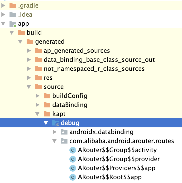 ARouter$$Root$$app的后缀”app”字符串是由gradle里面配置的AROUTER_MODULE_NAME决定的,一般我们设置成module的名字,这样不同module生成的类就不会重名: