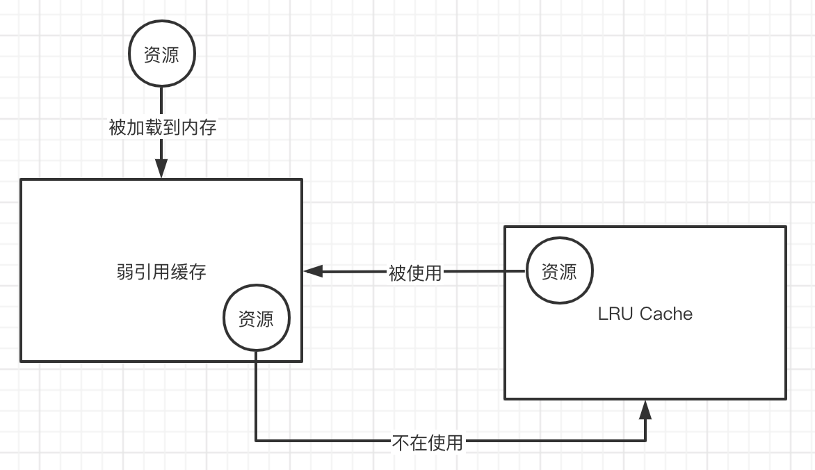 - 从Cache里面查询到的时候如果能查到,会将查到的资源放入弱引用缓存: