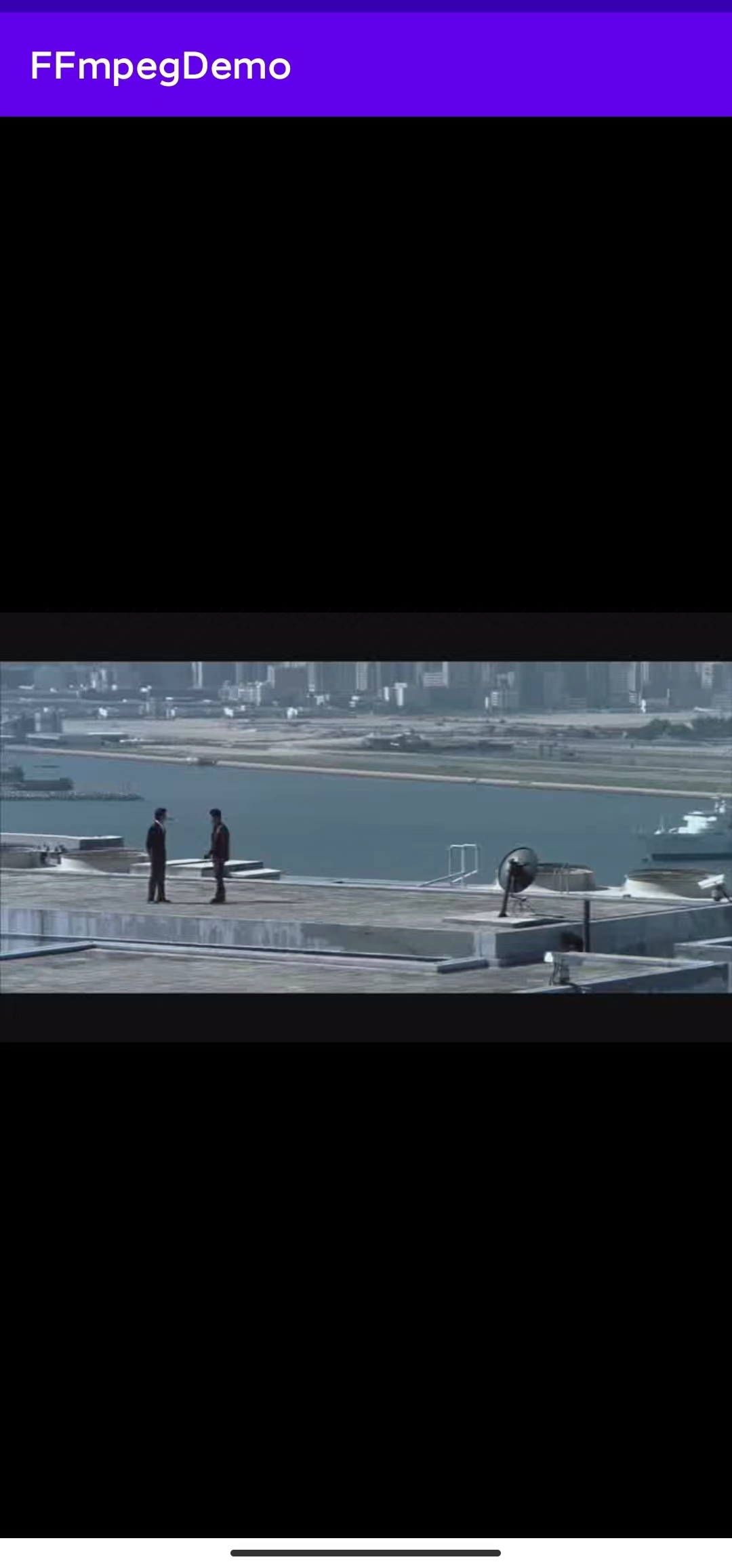 虽然视频能正常播放了,但是可以看到整个视频是铺满屏幕的。所以我们需要对视频进行缩放让他保持长宽比然后屏幕居中: