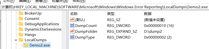 像这样的Demo2.exe就会在D:\dump2下生成dump文件。