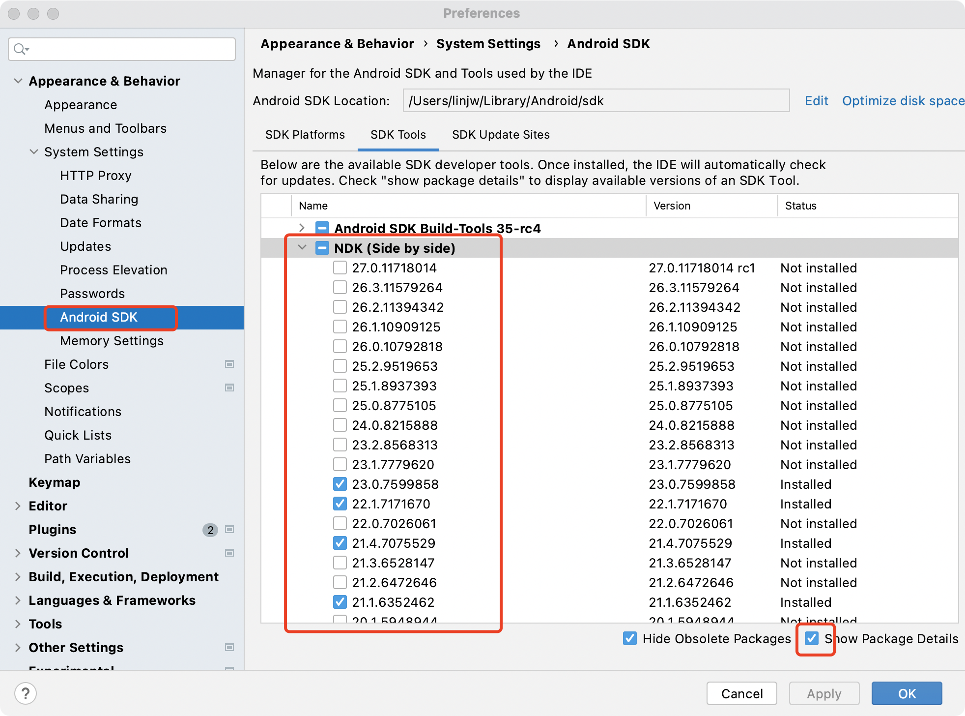 新版本的ndk都是在sdk里面携带的,可以在android studio里面选择版本下载: